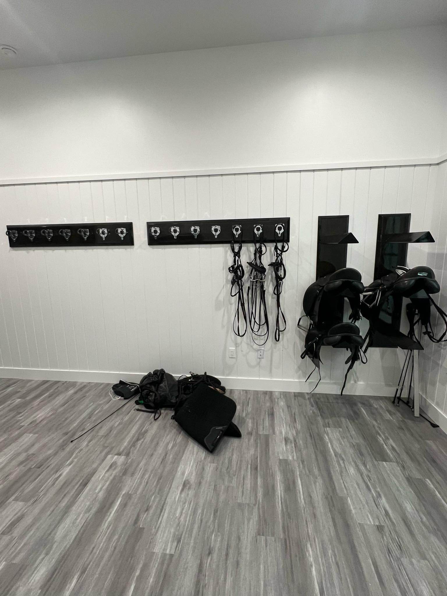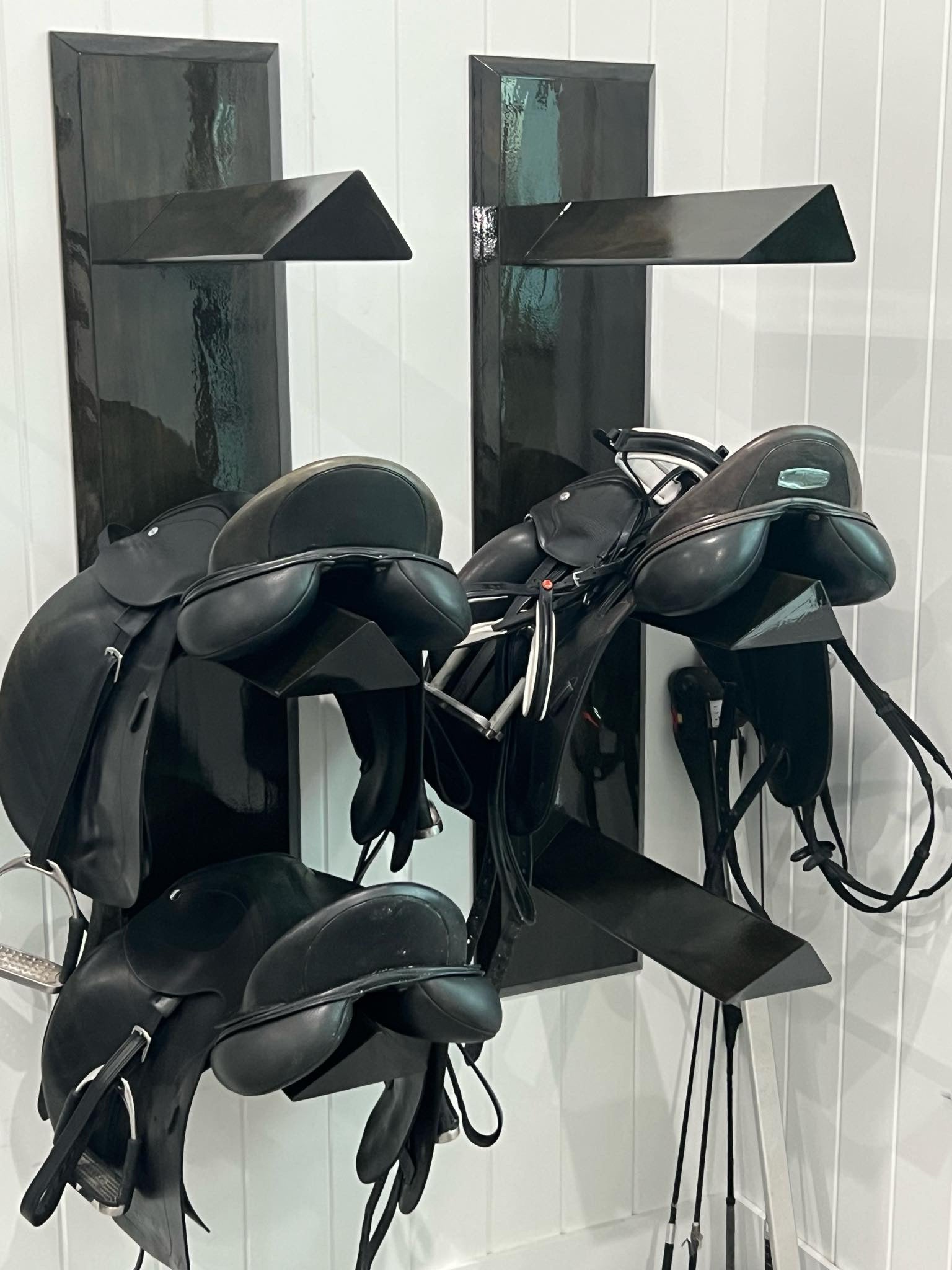 The Nierle Perfect Wall Mounted Saddle Rack is designed for a working barn yet could be added to a family room for saddle display.