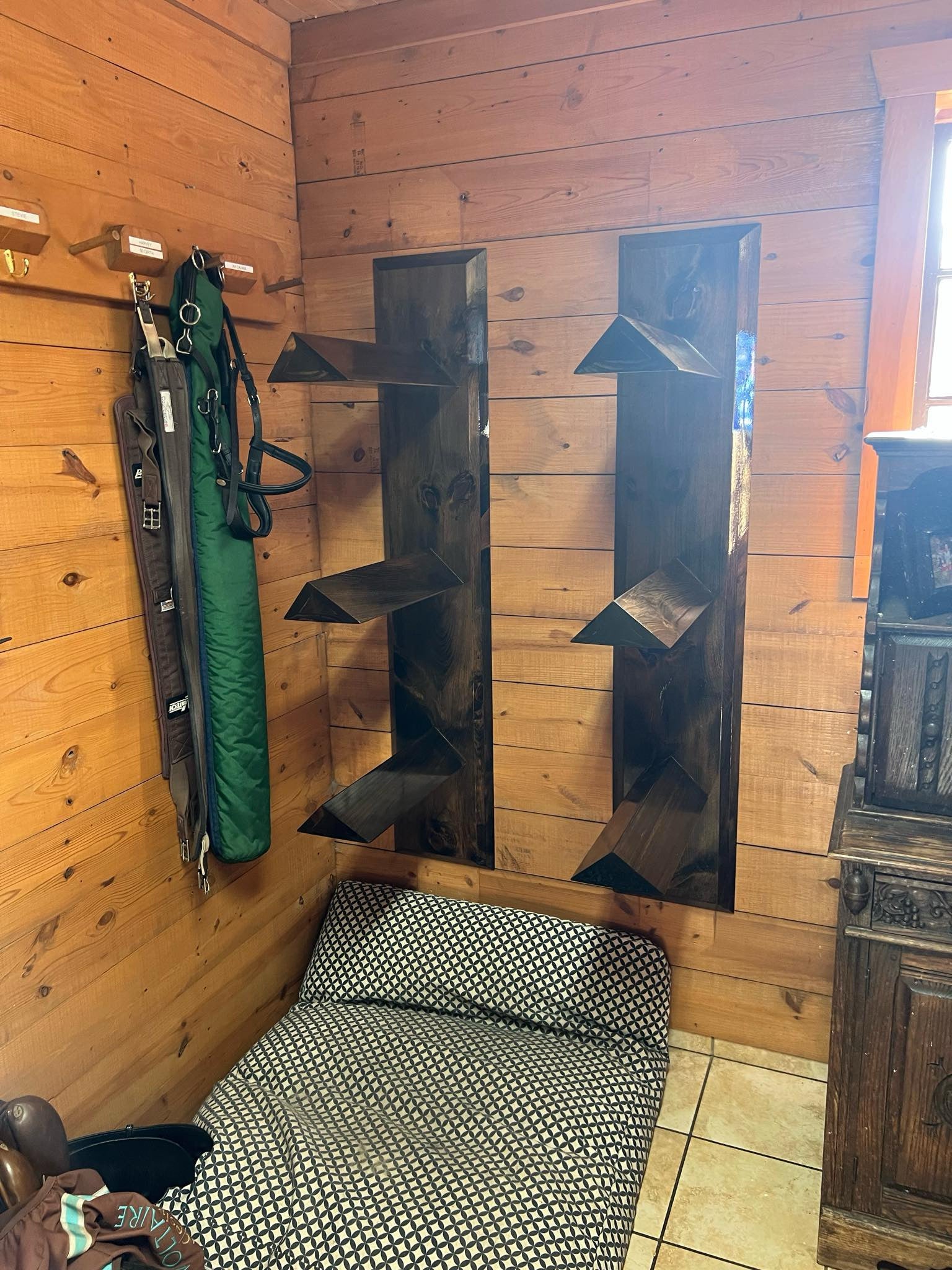 Originally crafted by a good friend and master furniture builder, John Nierle, this product deserves to be named after him. It's beauty is in the simplicity, achieved only through near impossible cuts in the lumber. Thought's given to the direction of the grain and selection of each piece of wood. Really adds a touch of elegance to any tack room and is a lifetime purchase built to be used commercially.